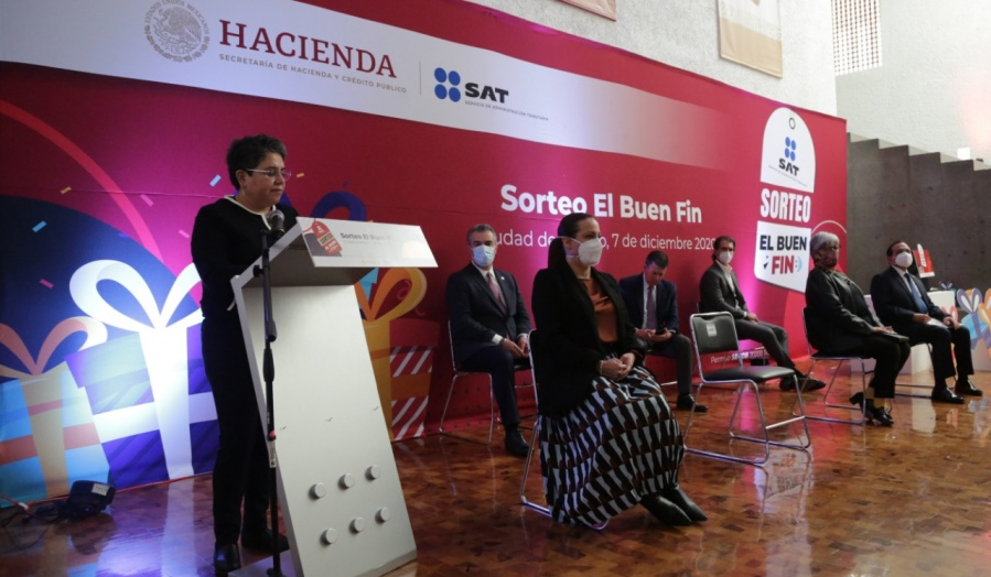 La jefa del Servicio de Administración Tributaria (SAT), Raquel Buenrostro, accionó el programa automatizado mediante el cual se seleccionó a los 300 mil ganadores del sorteo fiscal del Buen Fin 2020 que tiene 500 millones de pesos a repartir por compras hechas durante los 12 días de la campaña. Buenrostro declaró que aproximadamente 1 de cada 100 compras fueron premiadas.