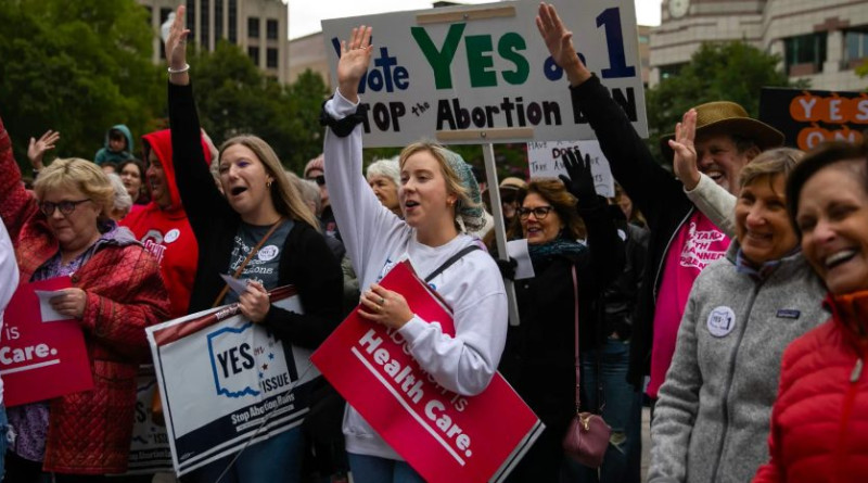 Con la victoría del sí en Ohio, ratificado por la mayoría de estados tradicionalmente liberales, sin tener que pasar por las urnas, el aborto parte a EU en dos mitades casi iguales y se convertirá en protagonista estrella de la campaña electoral que comienza en enero.