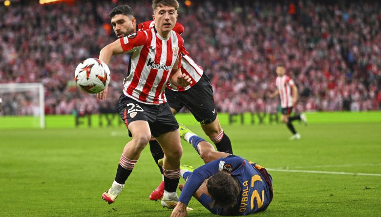 El Athletic Bilbao aprovechó su superioridad numérica y el doblete de Nico Williams para vencer el jueves 3-1 a la Roma y avanzar a los cuartos de final de la Liga Europa.